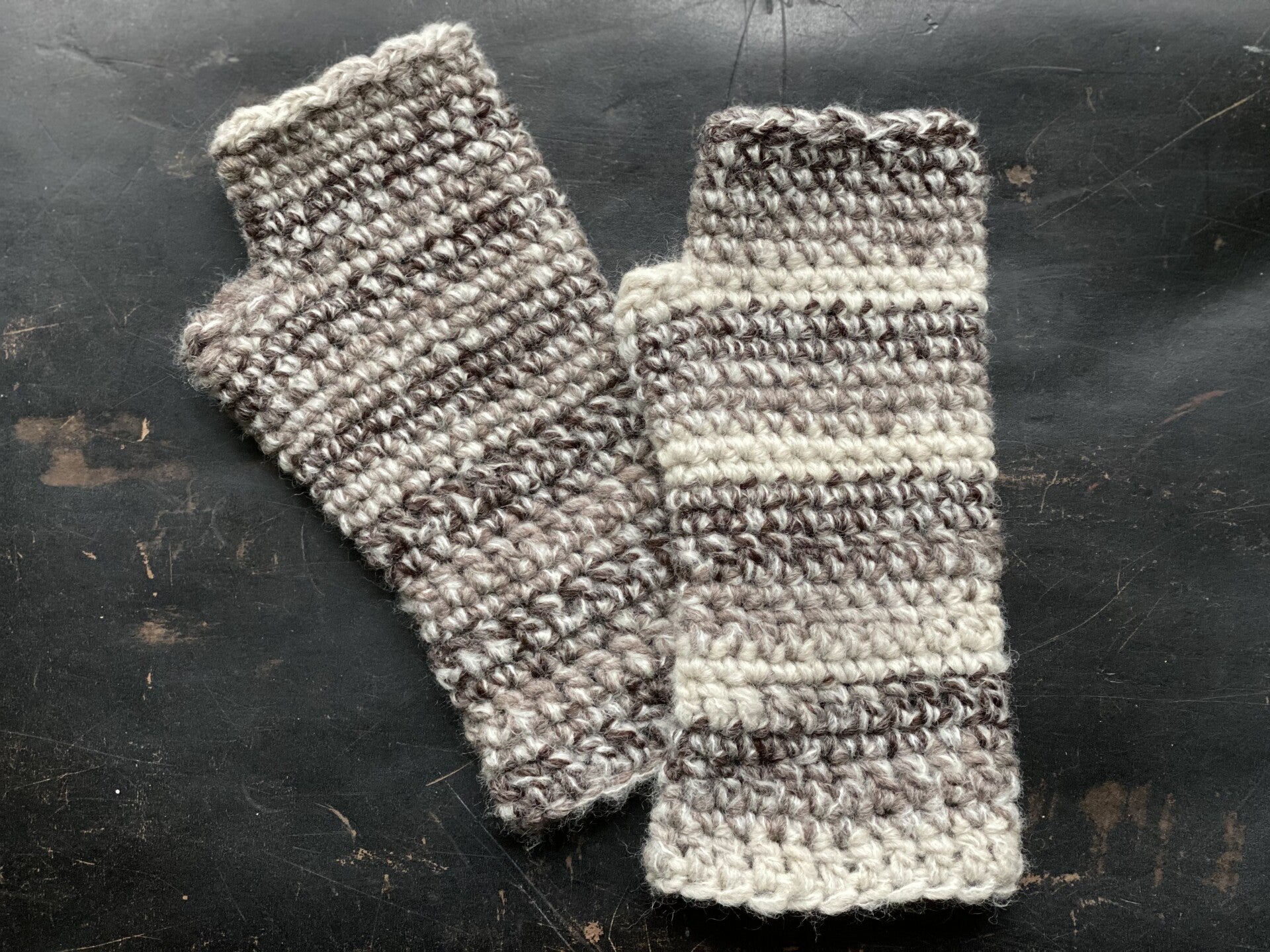 Vingerloze handschoenen / Polswarmers - 'vacht' - grijs-bruin