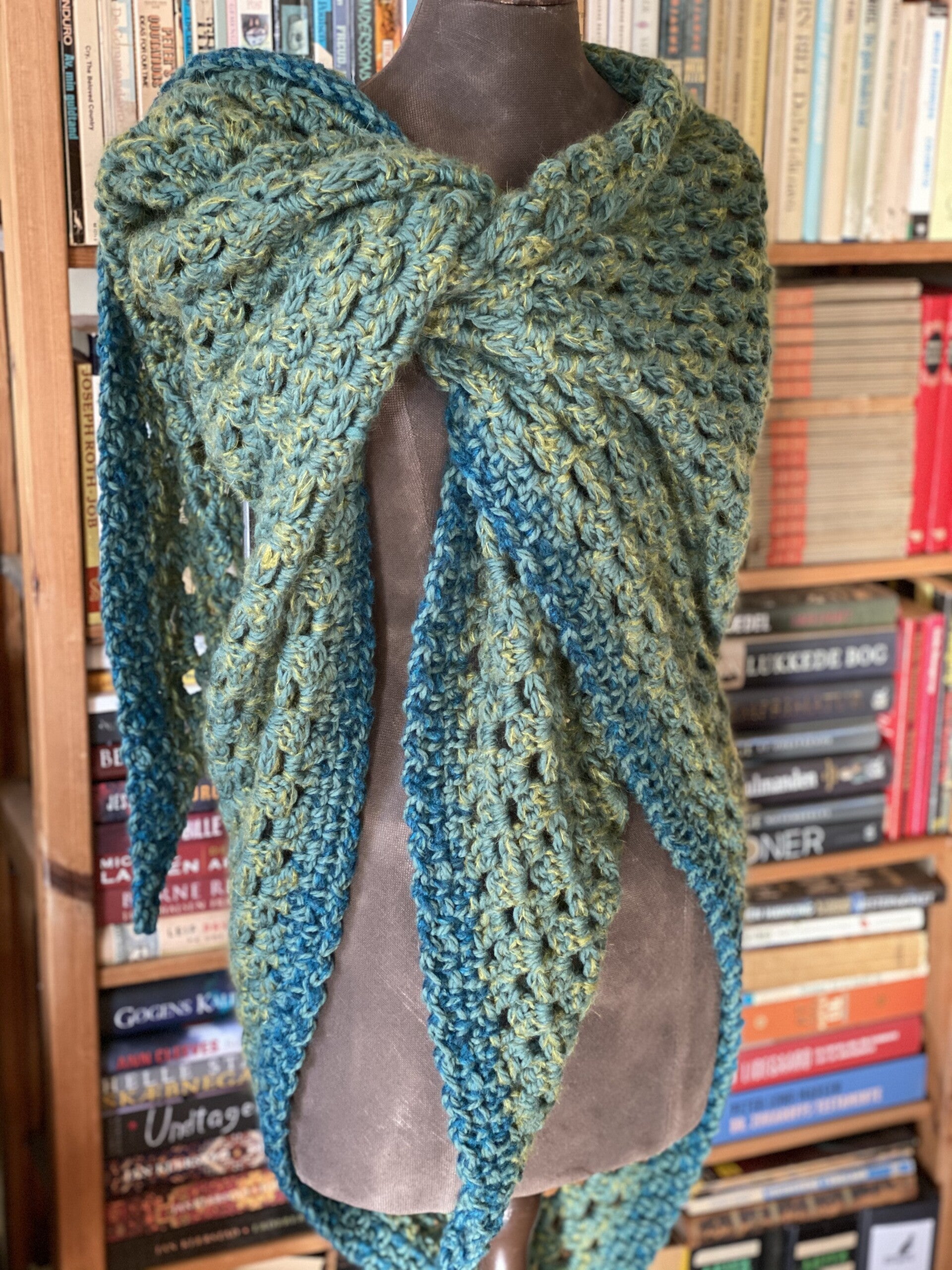 - Measurements: About 265 cm / 104 inches 'wing-span' and about 110 cm / 45 inches from the point straight up to the neckline.