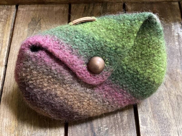 - Knitted of 100% wool, then felted.