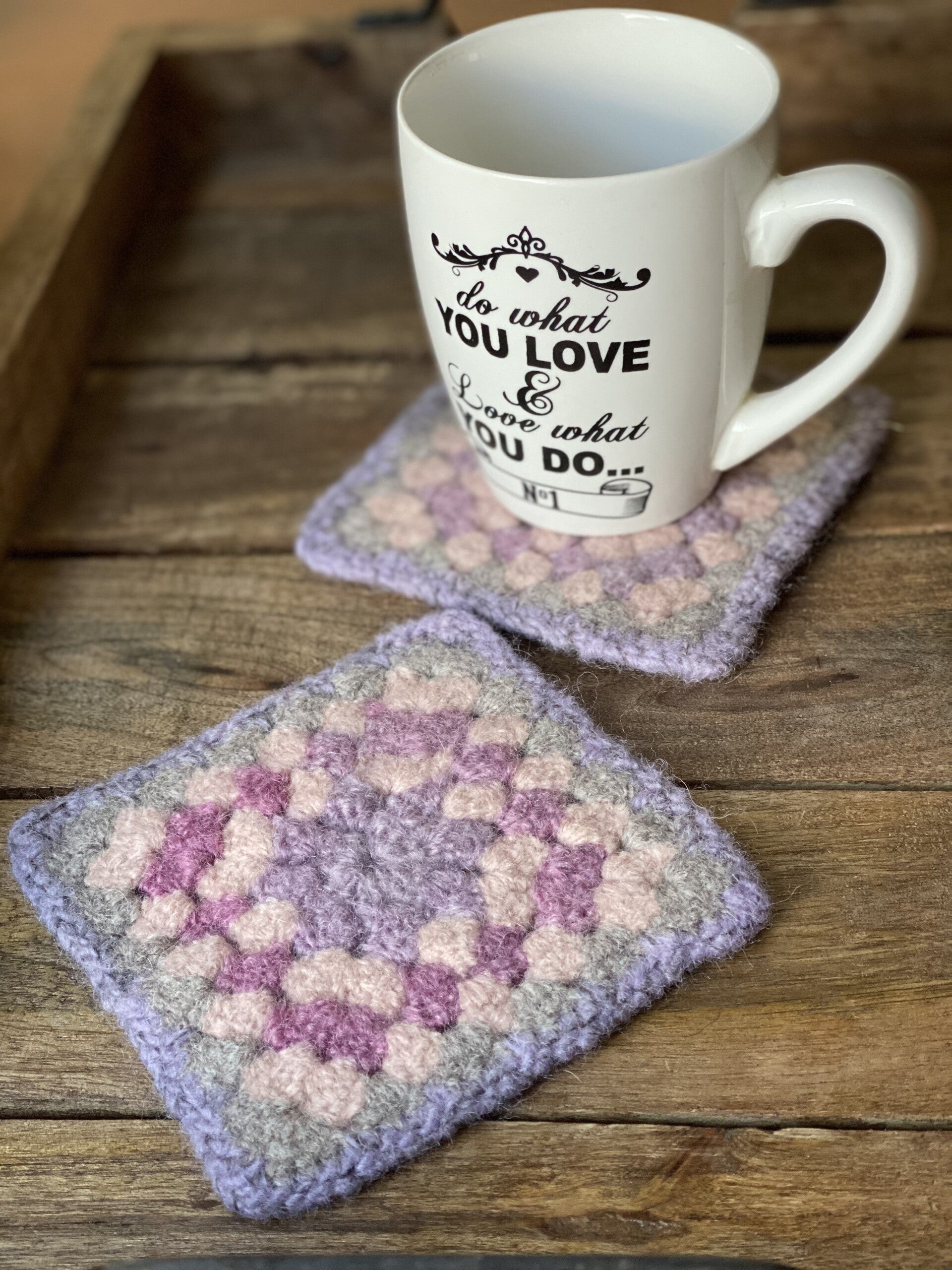Onze SoftCoasters zijn gehaakt van 100% mulesing free schapenwol, en vervilt. Ze beschermen je tafel tegen warm, koud en knoeien, en ondertussen zet je je kop of glas geluidloos neer: super praktisch, super mooi!