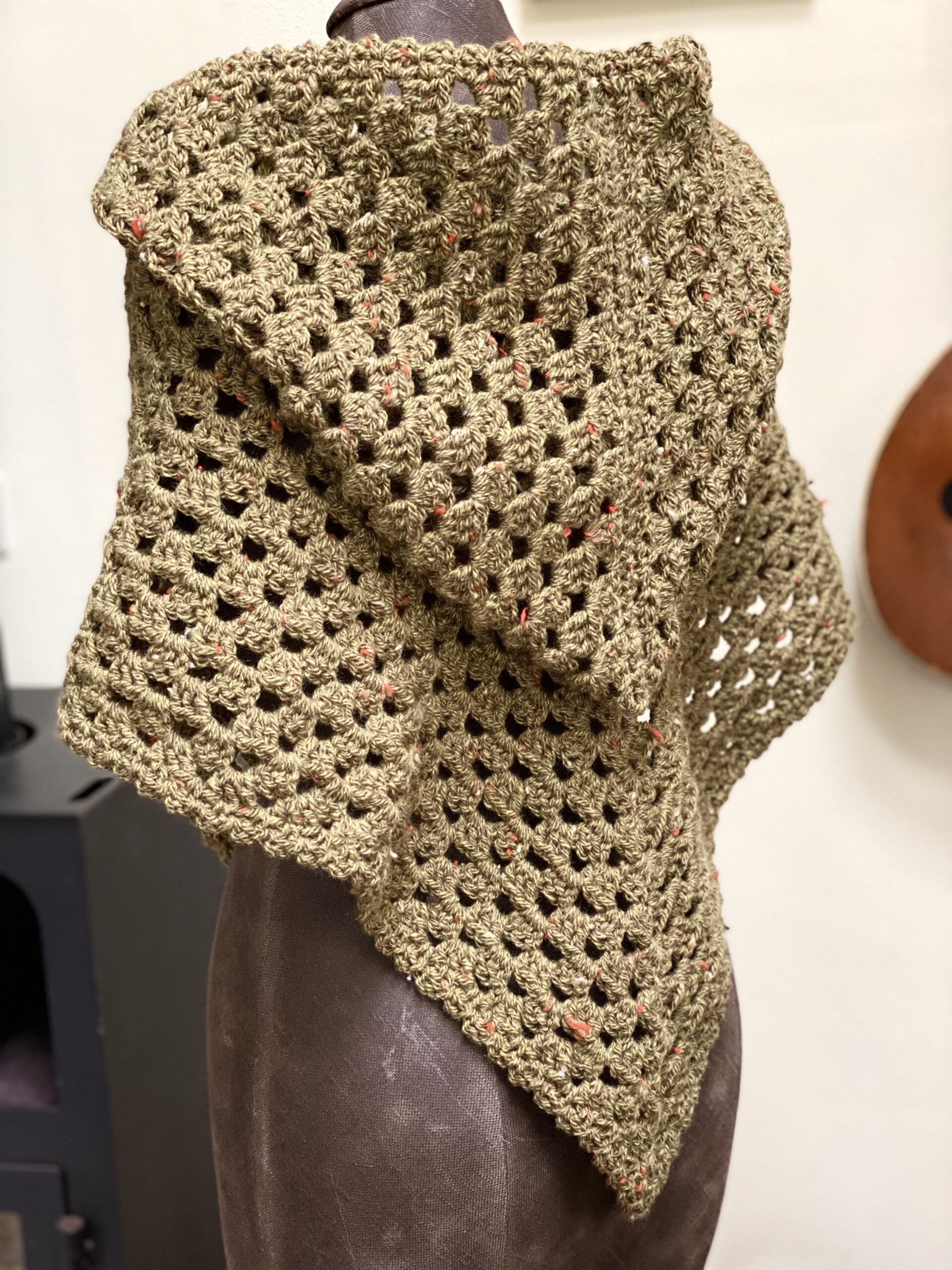 - Maten: Hood 33 cm deep and 41 cm hoog. De halsopening van de cape is ongeveer 80 cm omtrek. Van hals tot punt 48 cm, van schouder tot rand 30 cm.