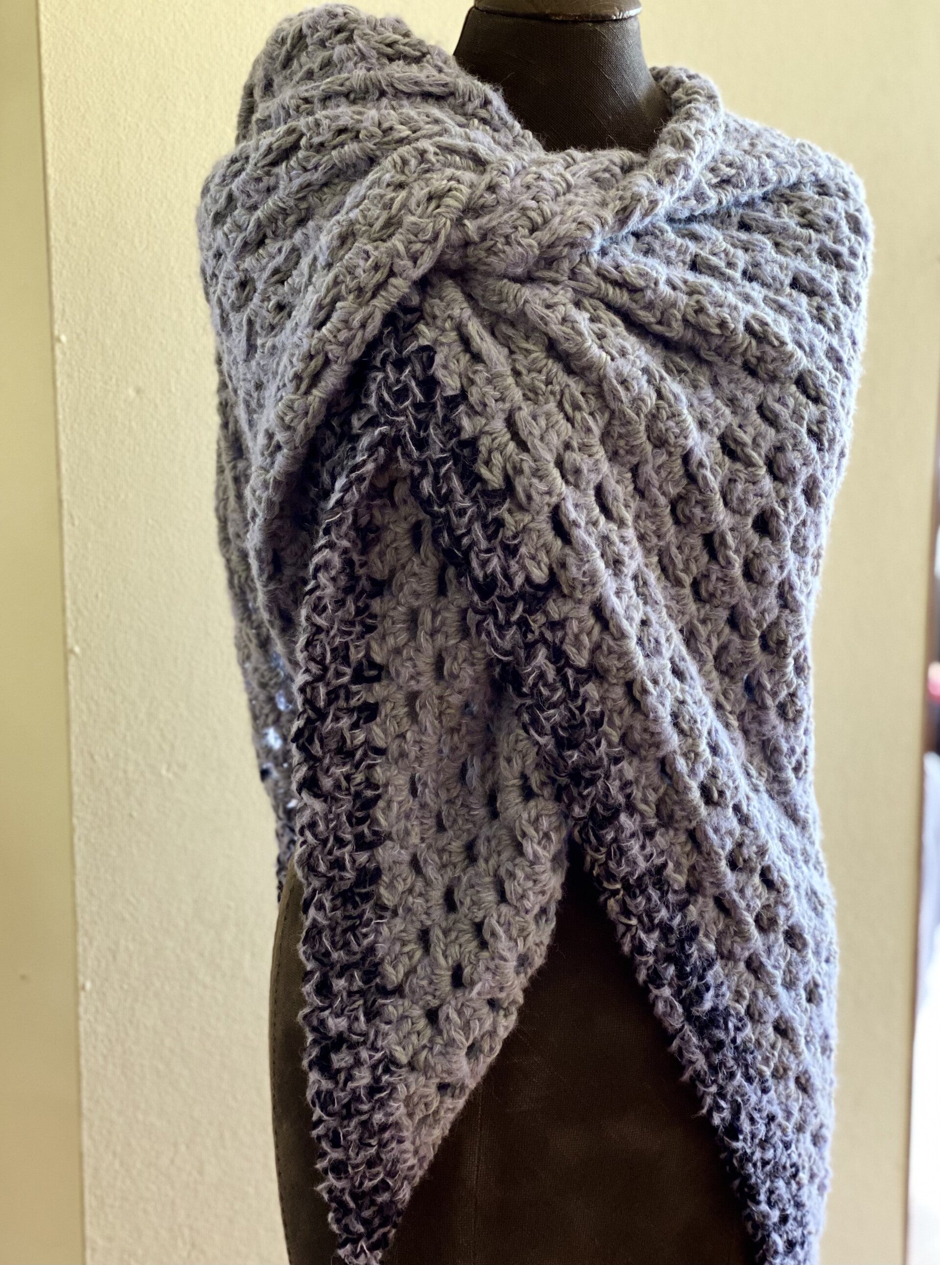 Our number one item, moest sold product ever: A super large wrap with extra long 'wings' to make it easier for you to wrap it the way you like and let it stay in place. The wrap is made of a combination of three threads, making it extra soft and cuddly. Despite its size, it has a light feel to it.