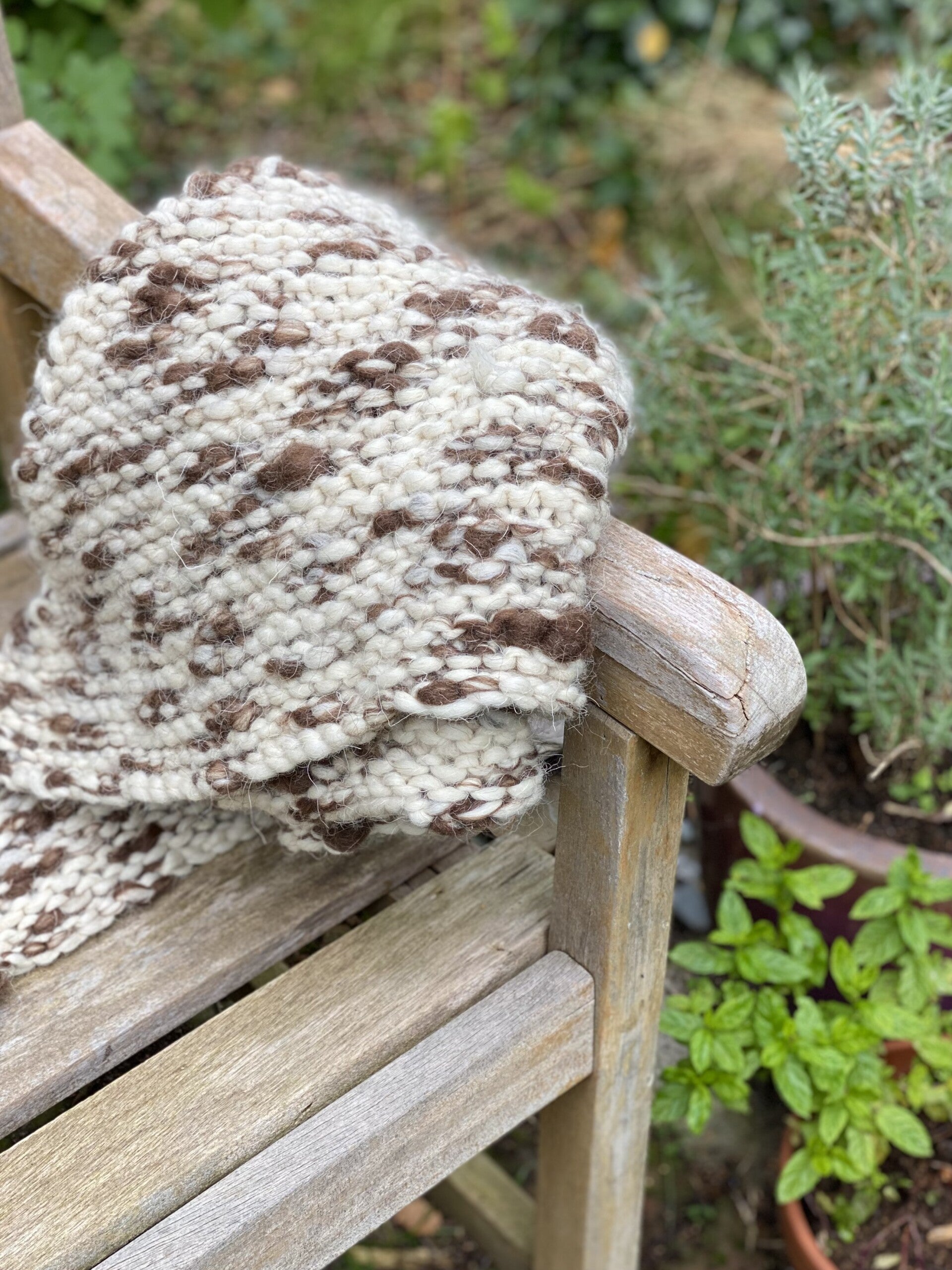 Super zacht, in het begin een klein beetje stug nog - zoals alle wol-breisels wordt hij in gebruik steeds zachter & soepeler.