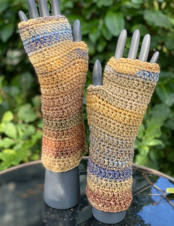 🇬🇧 Fingerless mittens / wrist warmers - super practical & warm! Left & right are not the same because due to interesting yarn.