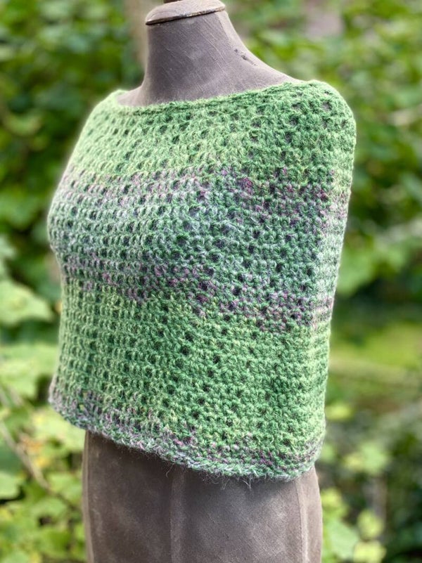 Heerlijk stoere poncho, maar toch elegant. Hij is gehaakt van zuivere natuur-garens en wordt alsmaar zachter in gebruik