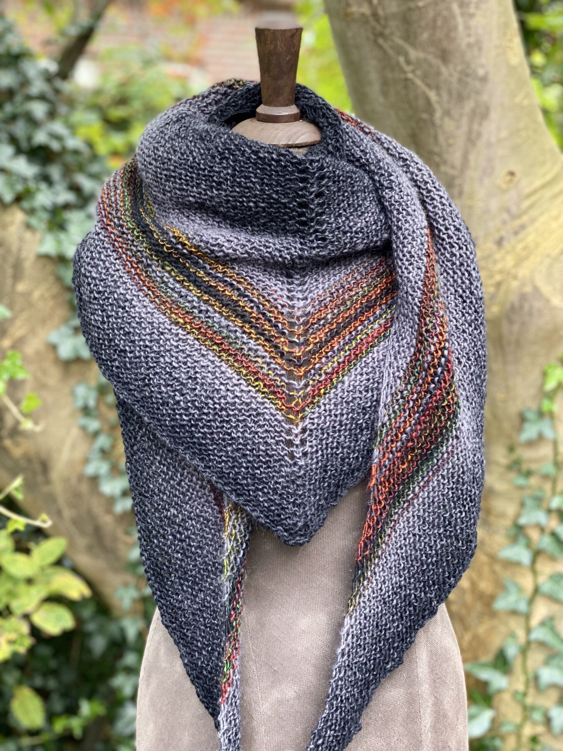Driehoekige, middelgrote omslagdoek / sjaal in een heel bijzonder model: een hele platte driehoek!