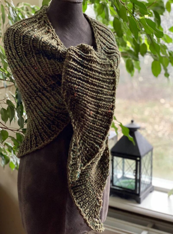 Driehoekige, middelgrote omslagdoek / sjaal in een heel bijzonder model: een hele platte driehoek!