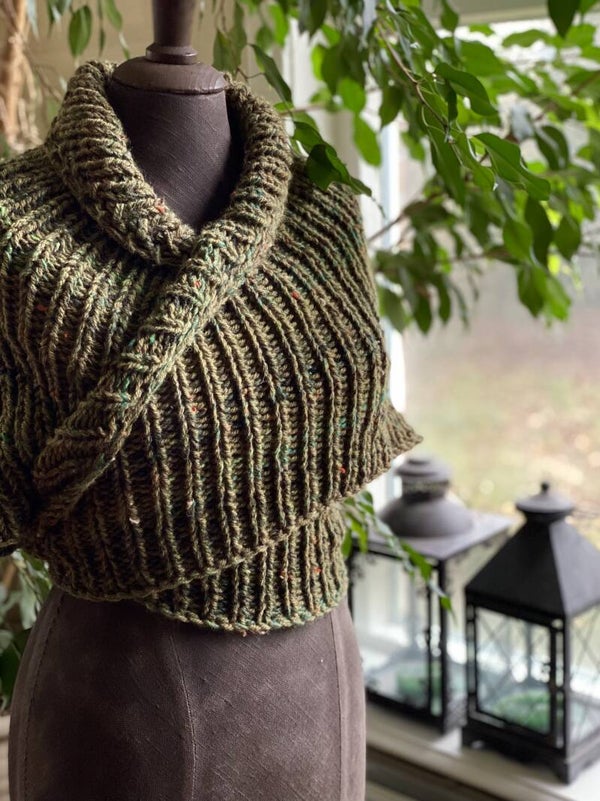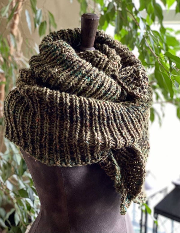 Je kunt hem daarom dragen als een lange sjaal, als een korte omslagdoek - of gewoon om je heen gooien, hij is altijd leuk en stijlvol.