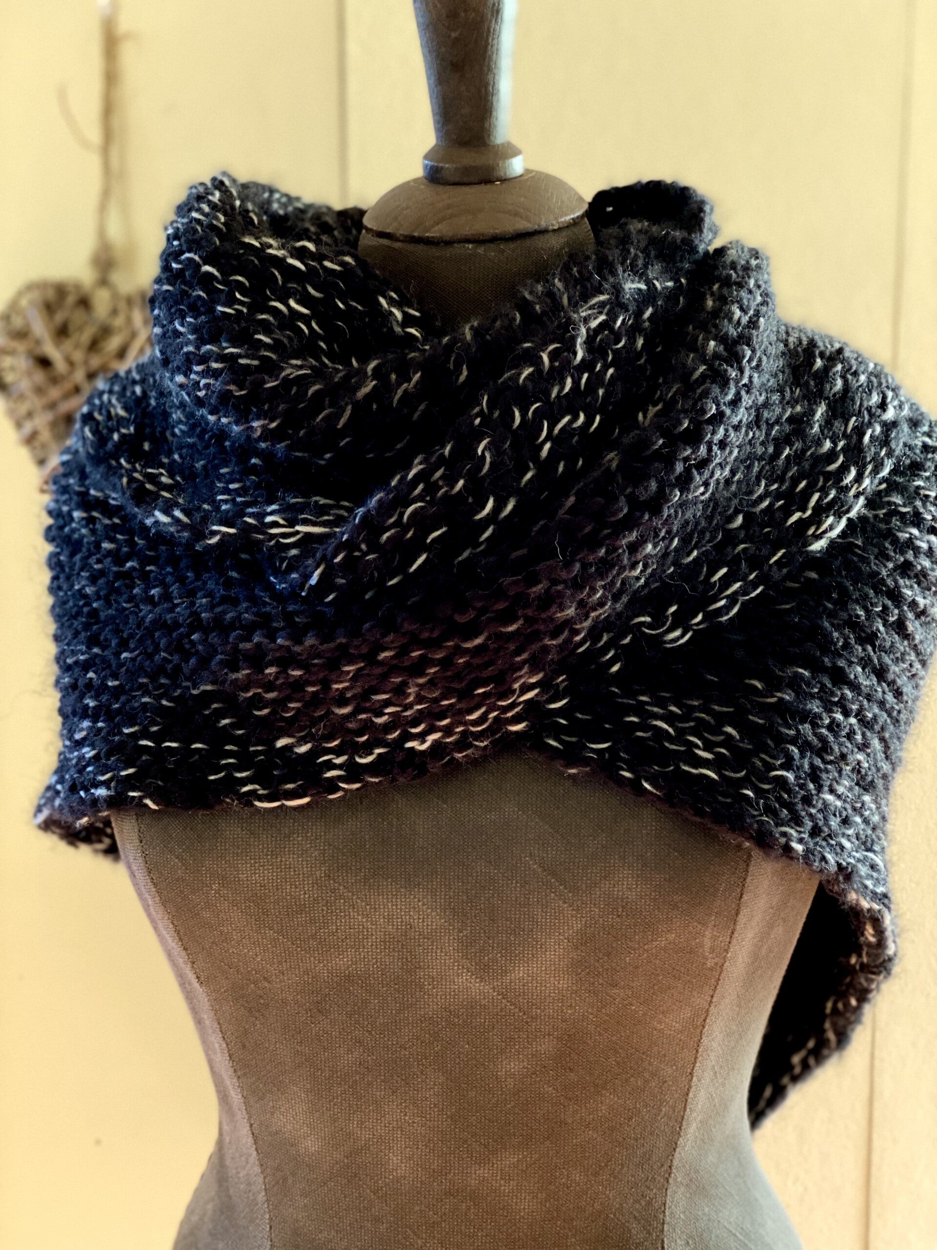 Je kunt hem daarom dragen als een lange sjaal, als een korte omslagdoek - of gewoon om je heen gooien, hij is altijd leuk en stijlvol.