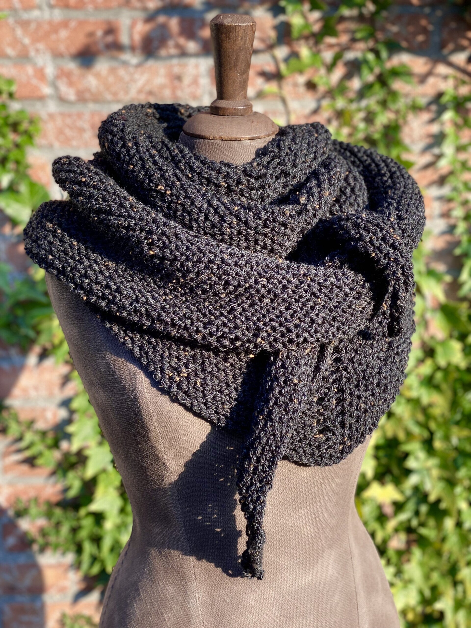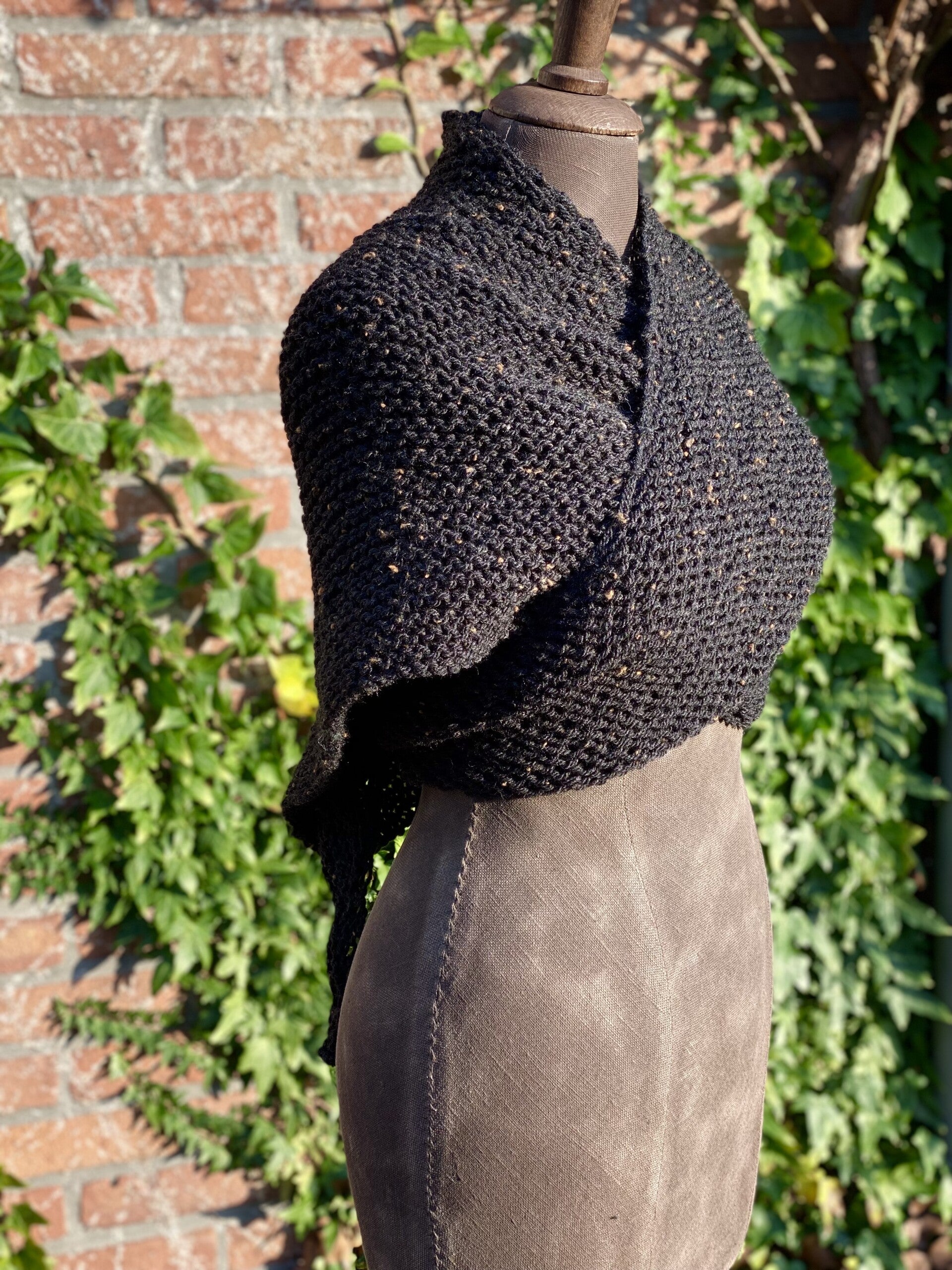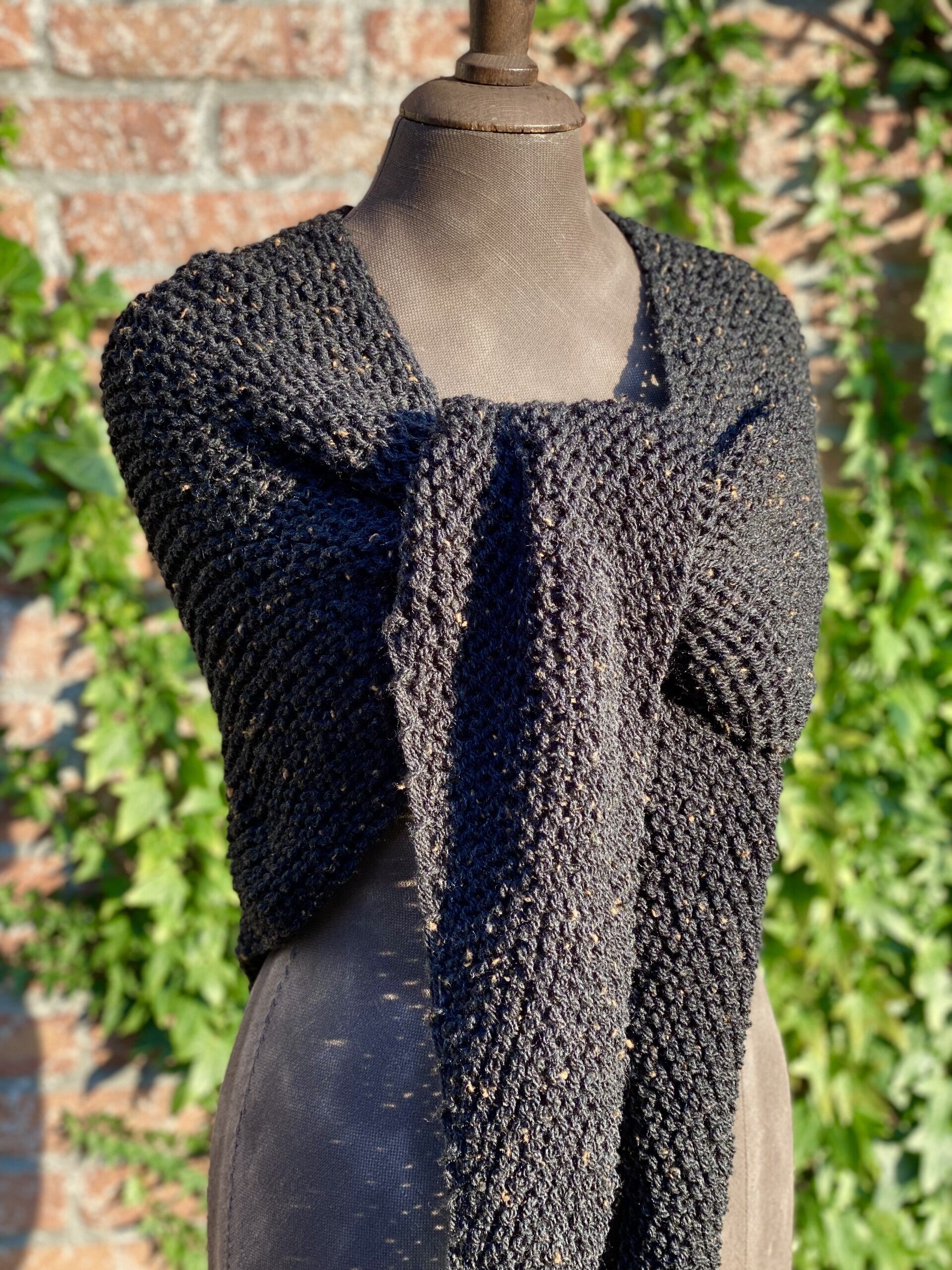Driehoekige, middelgrote omslagdoek / sjaal in een heel bijzonder model: een hele platte driehoek!