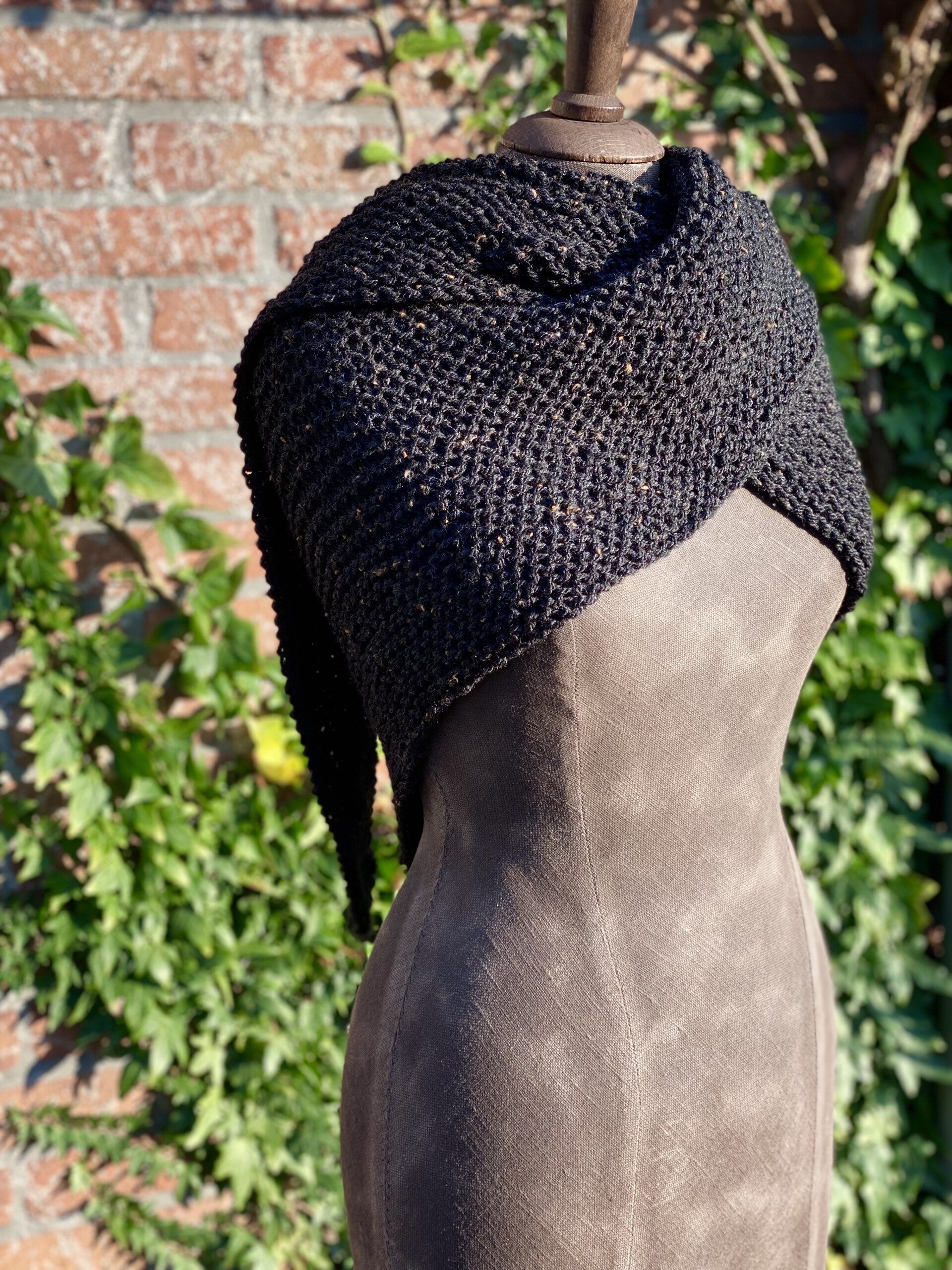 Driehoekige, middelgrote omslagdoek / sjaal in een heel bijzonder model: een hele platte driehoek!