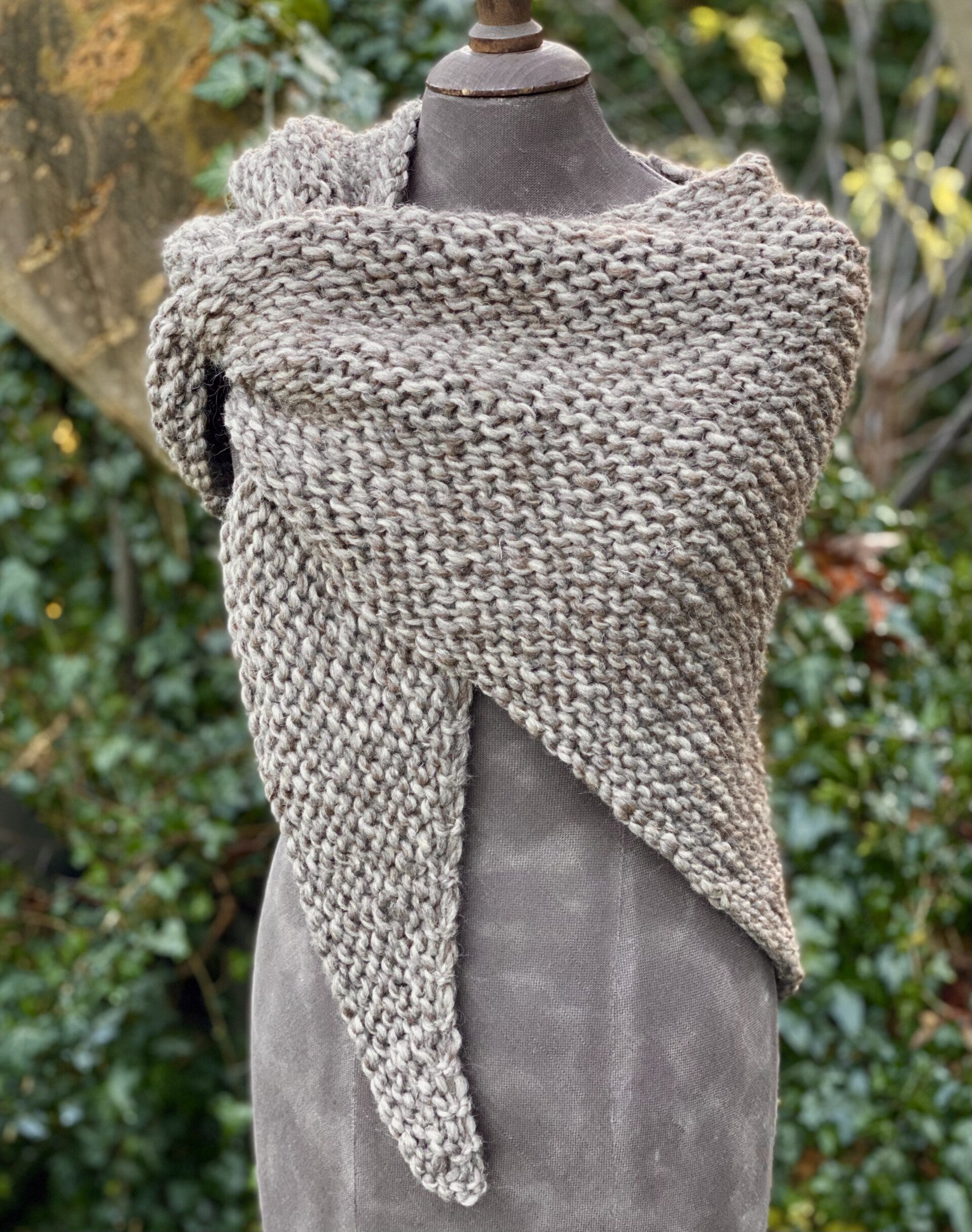 Driehoekige, middelgrote omslagdoek / sjaal in een heel bijzonder model: een hele platte driehoek!