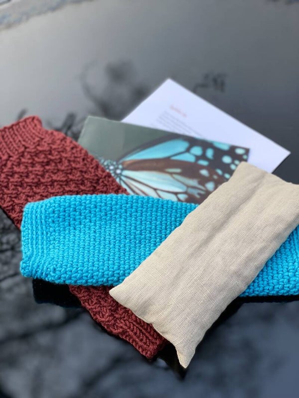 - Materialen: binnenkussen 100% biologische linnen, vulling bio lijnzaad met bio lavendel uit Limburg OF met bio linzen; hoezen merino wol uit Zuid-America, met eco stamp