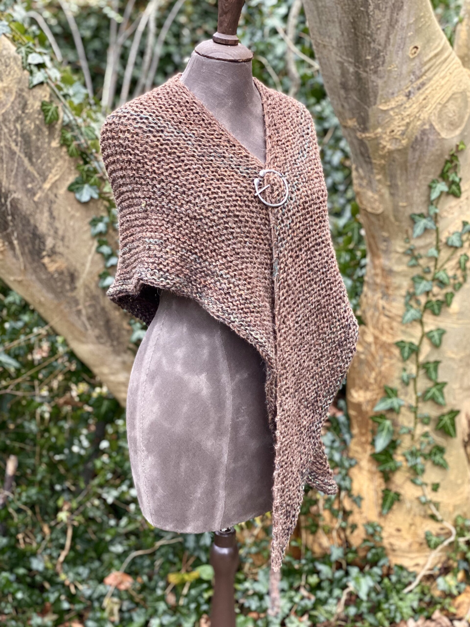 Claire's Hug - Warm Bruin m oa groen. Wol. Met Fibula (speld)