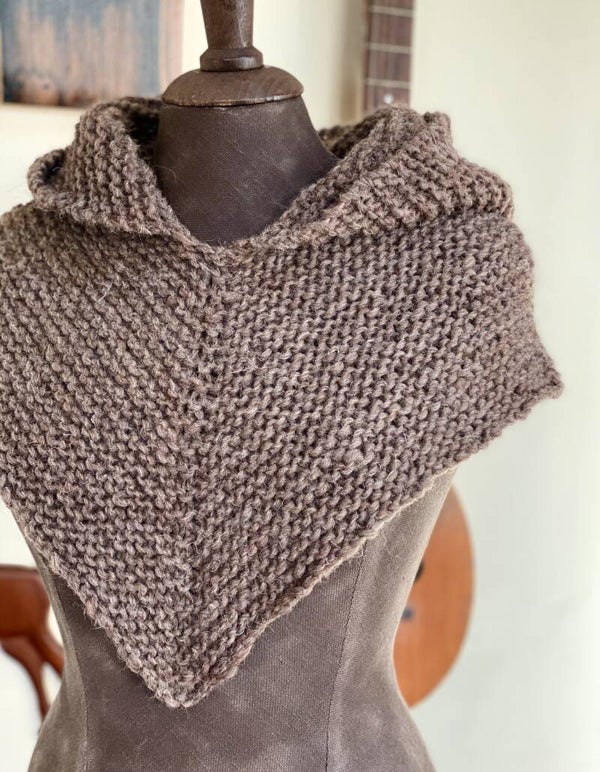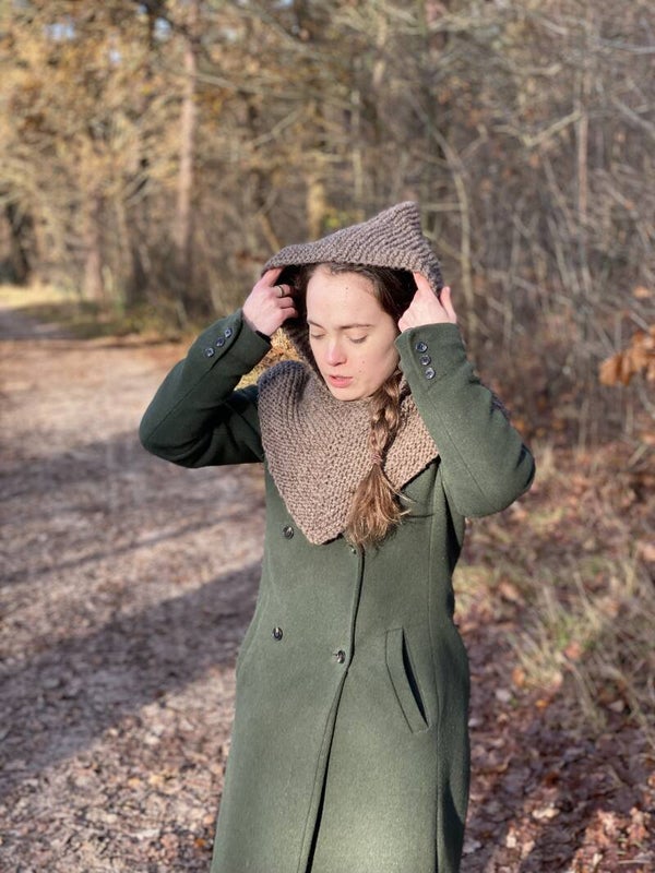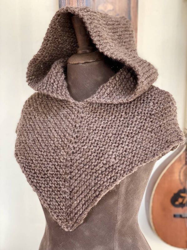 Seriously awesome, knitted woollen hood with a short closed cape, inspired by the Skjoldhamn caped hood, found in Norway app the year of 1050.
