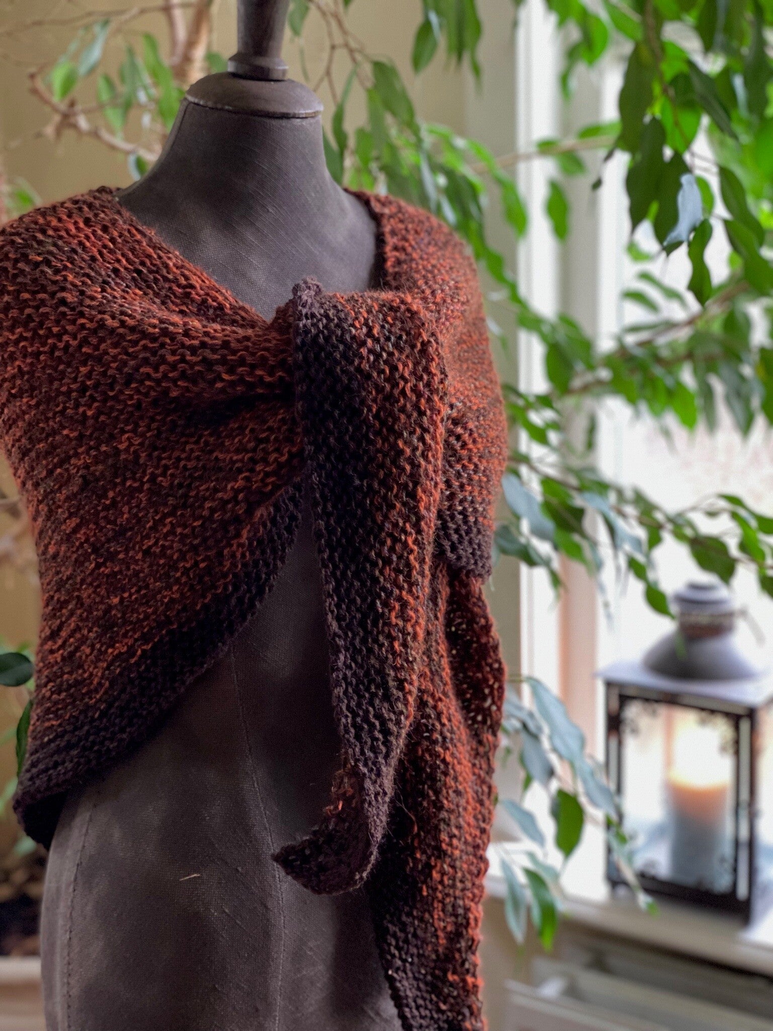 Triangular, medium sized shawl in a very special model: a very flat triangle!
