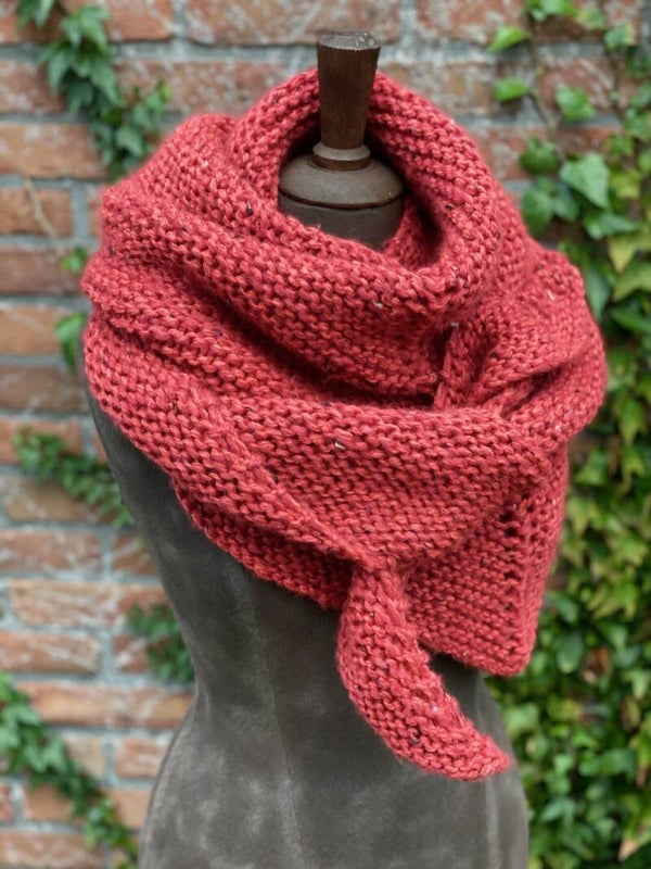 Triangular, medium sized shawl in a very special model: a very flat triangle!