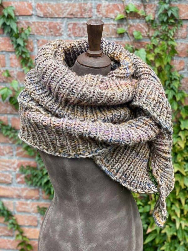 Triangular, medium sized shawl in a very special model: a very flat triangle!