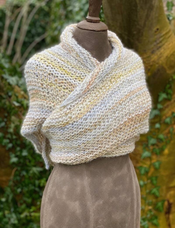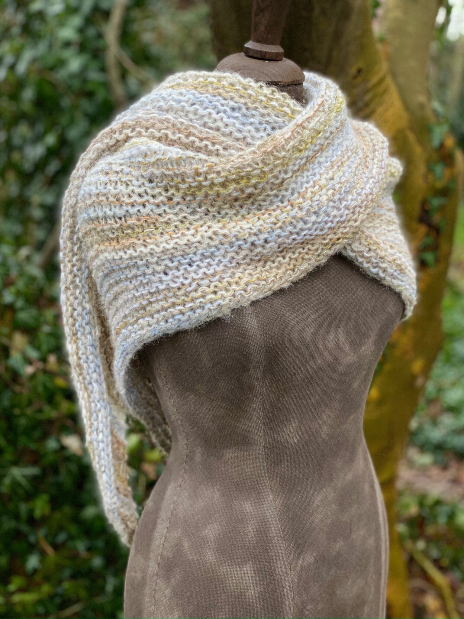 Triangular, medium sized shawl in a very special model: a very flat triangle!