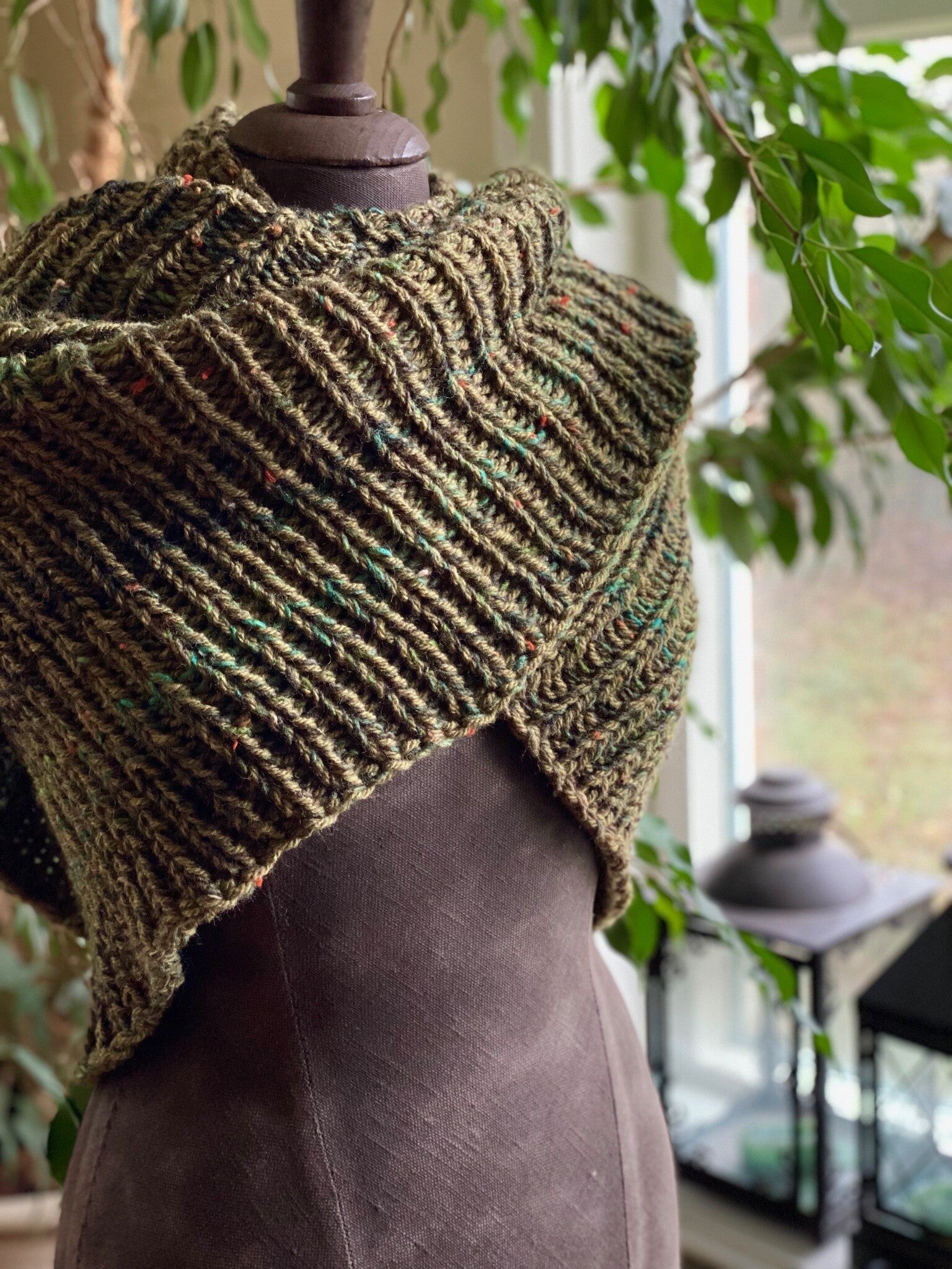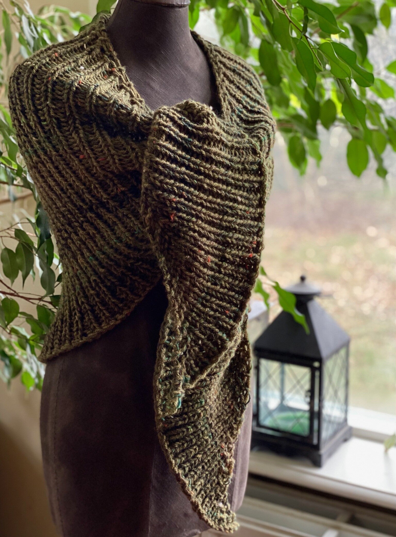Triangular, medium sized shawl in a very special model: a very flat triangle!