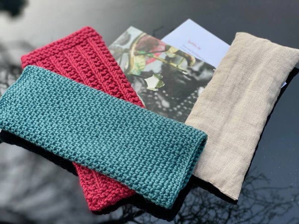 A pillow made from organic linen, stuffed with flaxseed and lavender, or flaxseed and lentils (your choice), all organic as well.