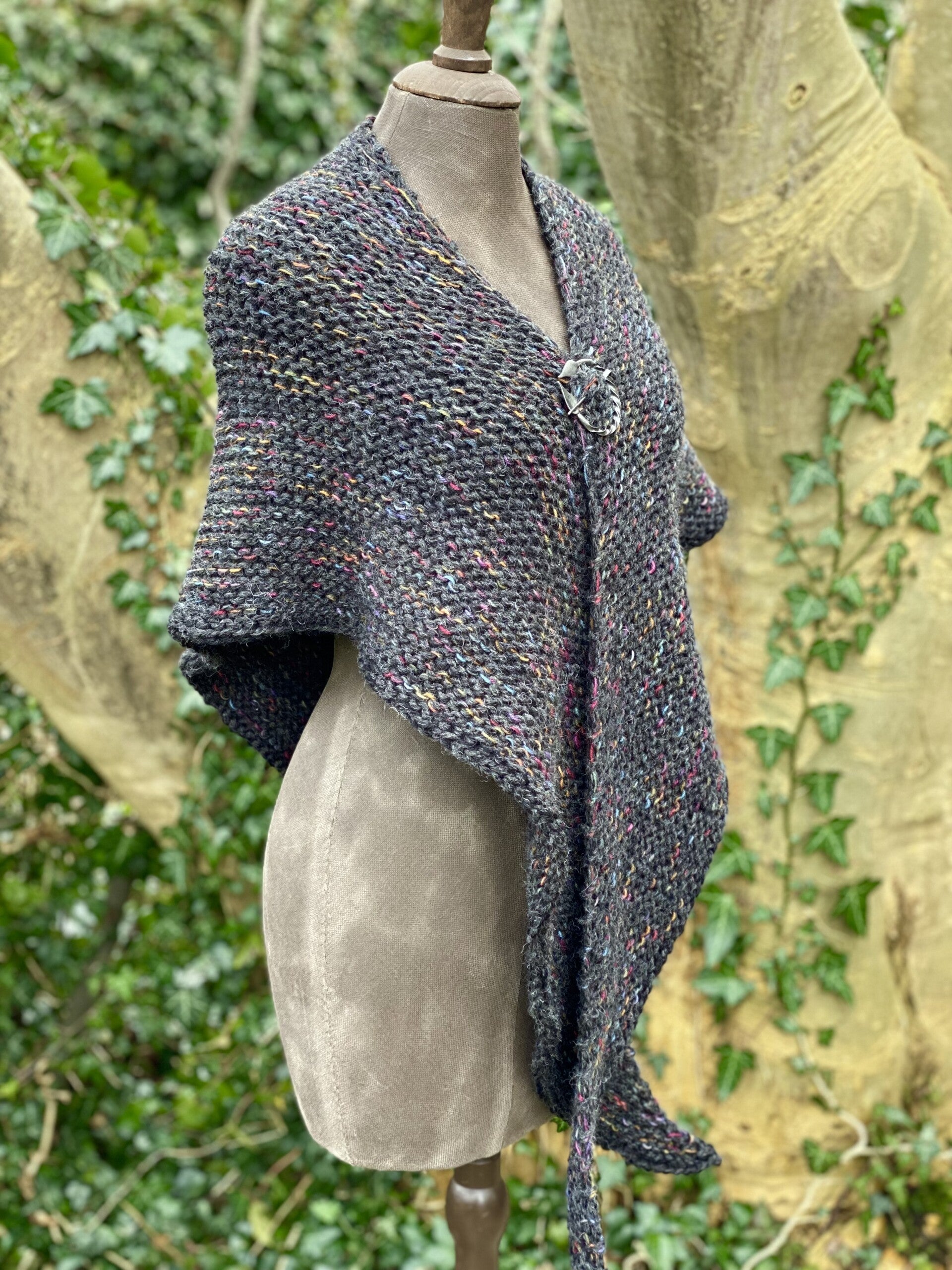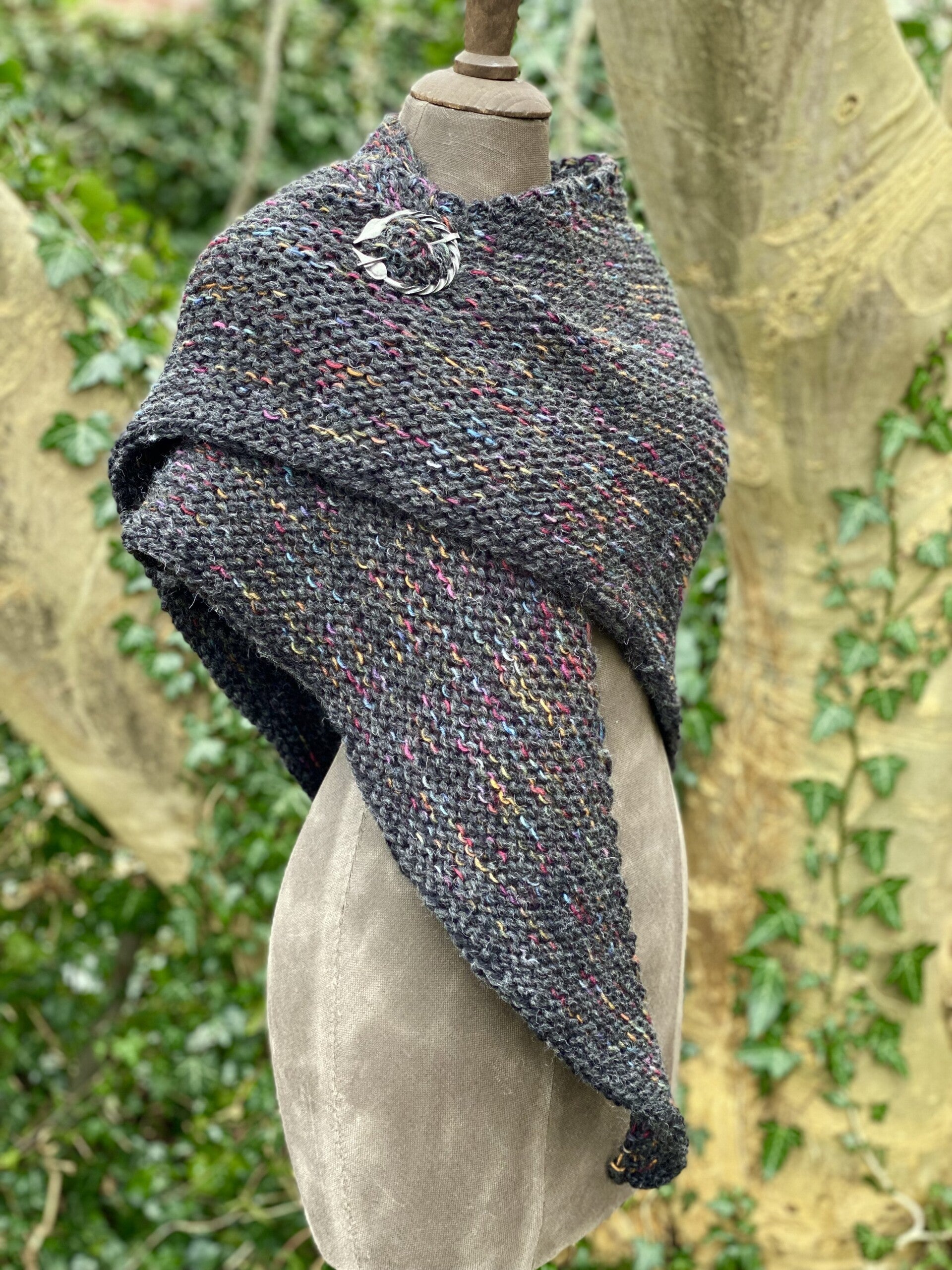 Driehoekige, middelgrote omslagdoek / sjaal in een heel bijzonder model: een hele platte driehoek!