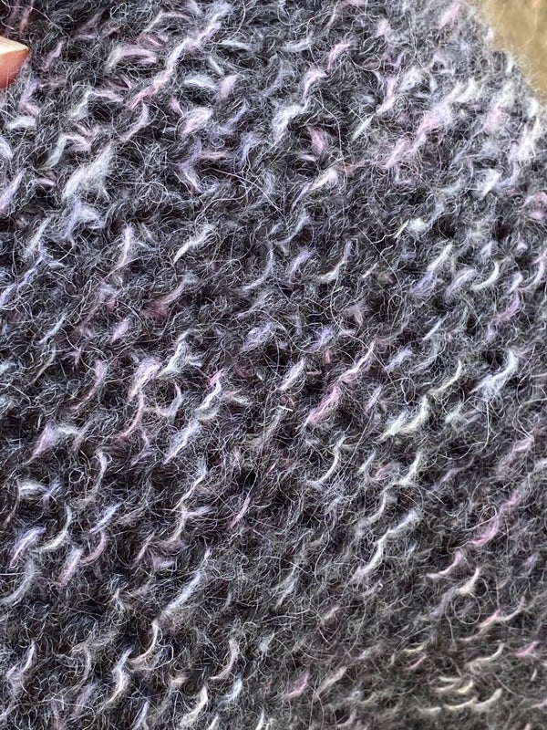 Soft Hug - Grijs m Roze-Lila / Grey w Pink-Lilac. Incl fibula (speld / pin)