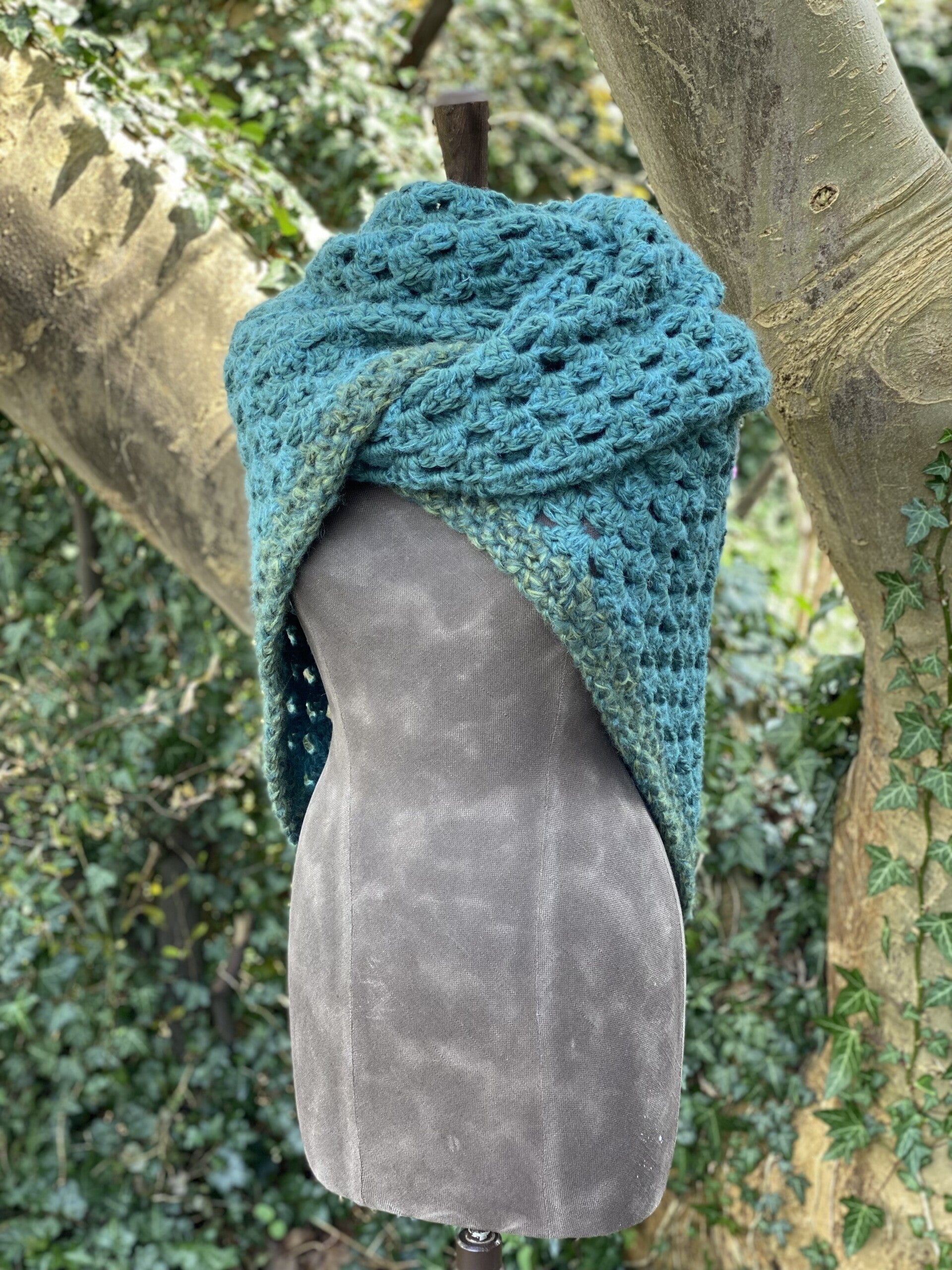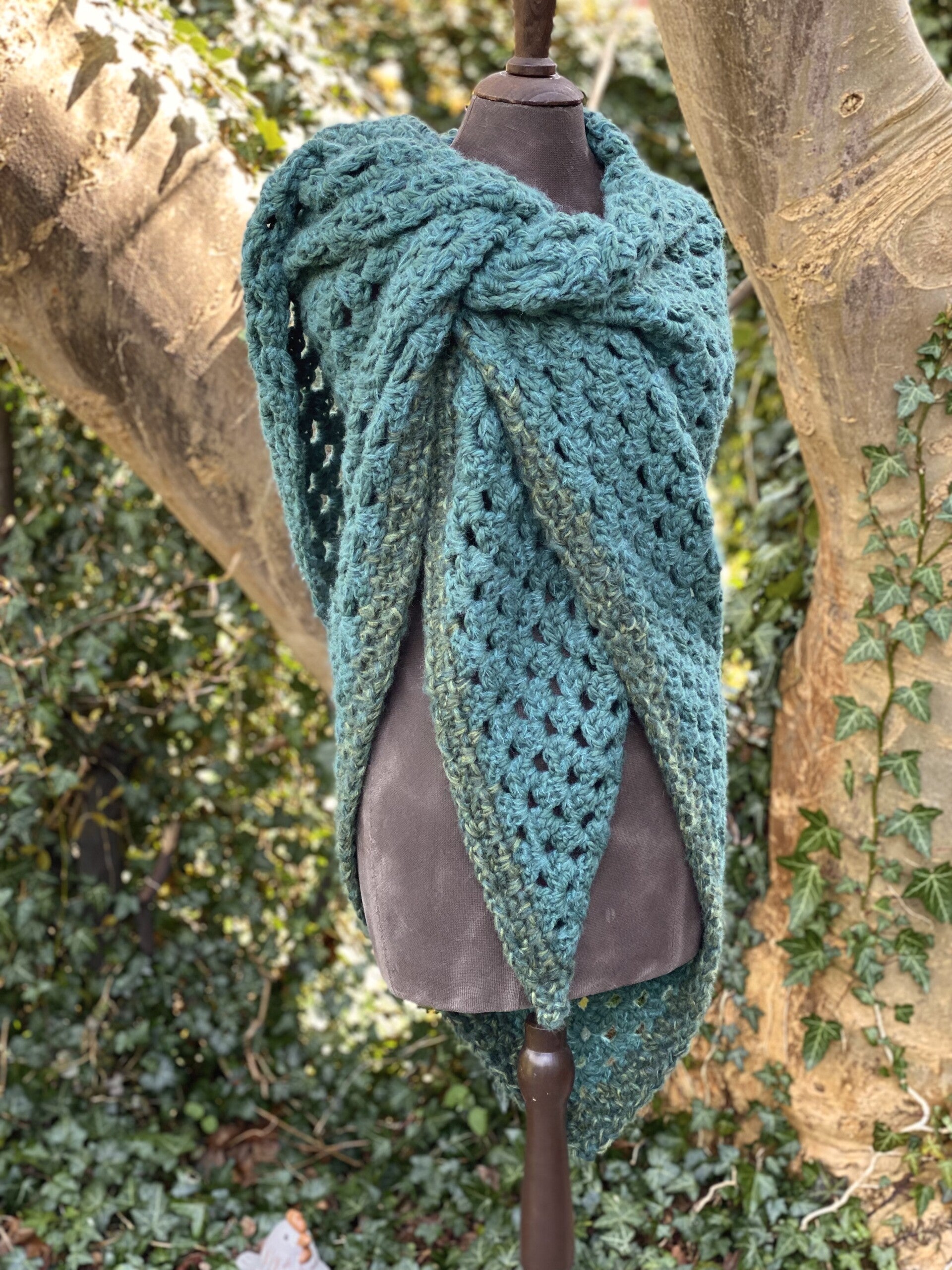 Driehoekige, supergrote omslagdoek, extreem zacht door de combinatie van diverse draden. Ondanks de grootte van de doek voelt hij in het geheel niet zwaar aan, hij draagt licht, prettig en echt als een knuffel.