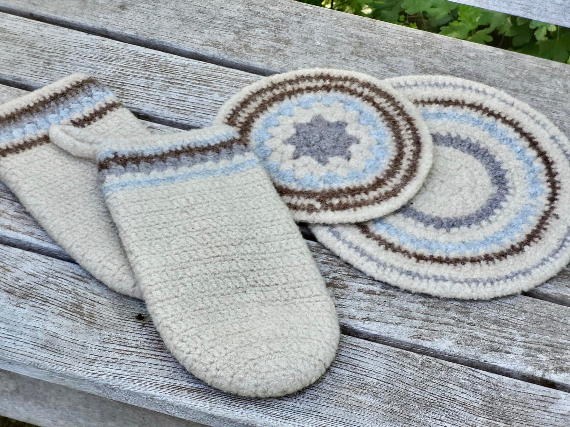 Unieke GrillWanten & HotPads van zuivere wol: Na het haken zijn xe vervilt en daarom sterk isolerend.