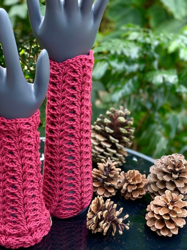 Incredibly practical, long armwarmers, super warm. Neatly crocheted, flexible & nice to wear.