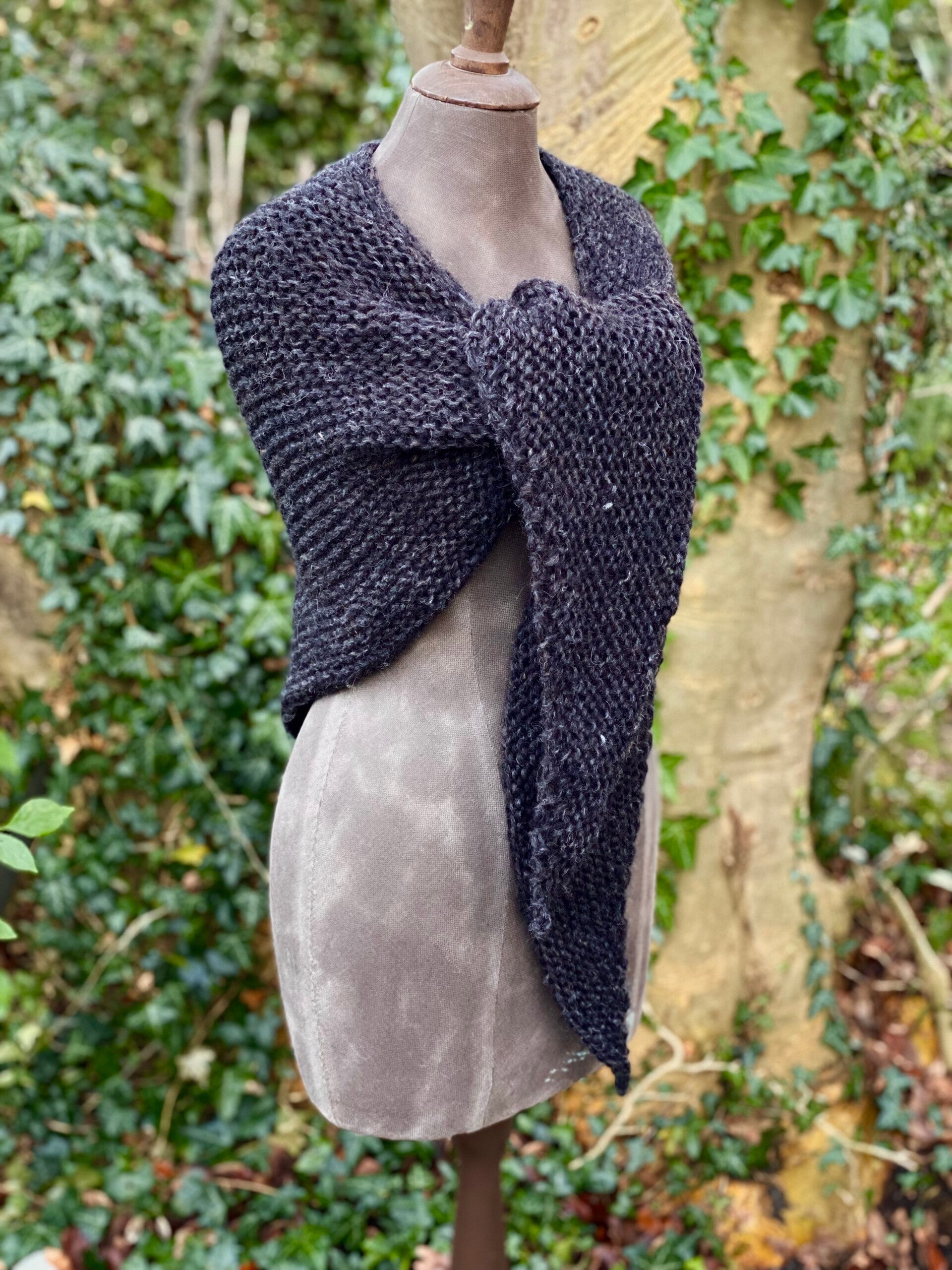 Driehoekige, middelgrote omslagdoek / sjaal in een heel bijzonder model: een hele platte driehoek!